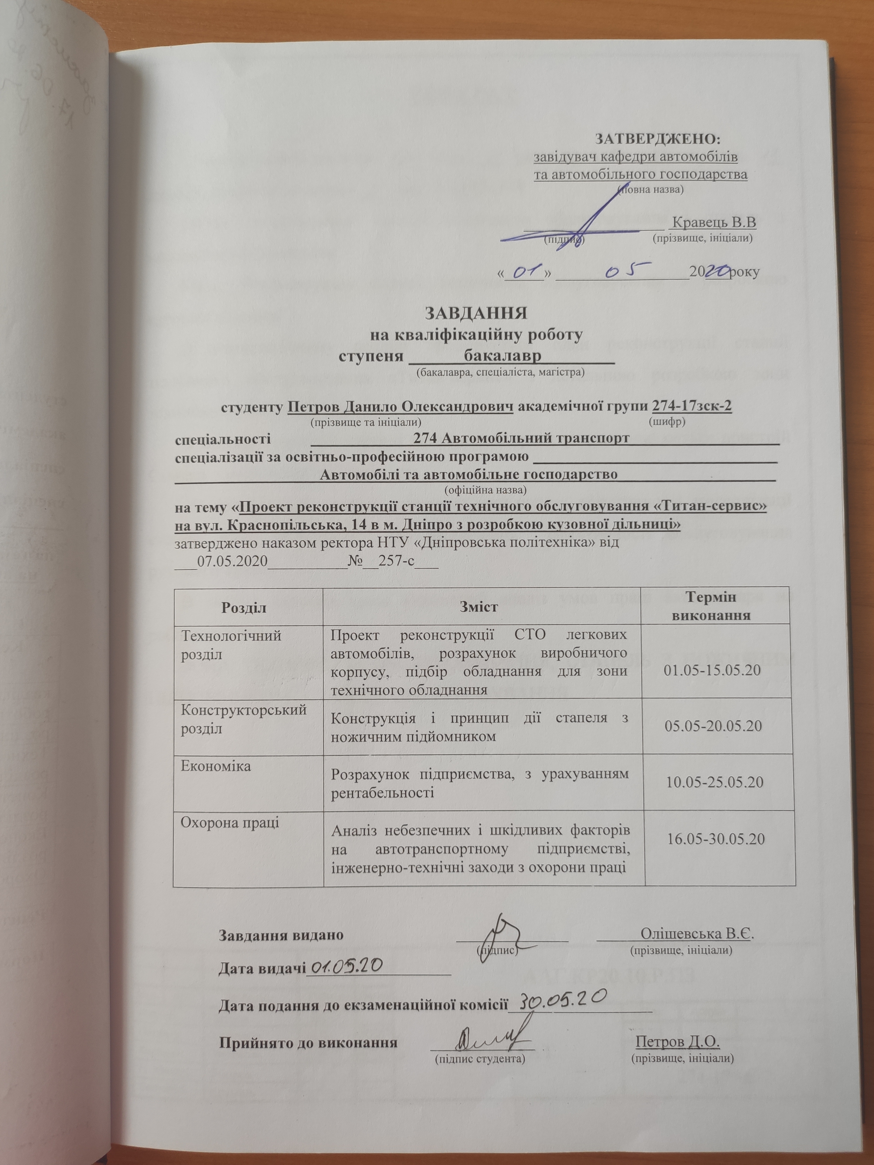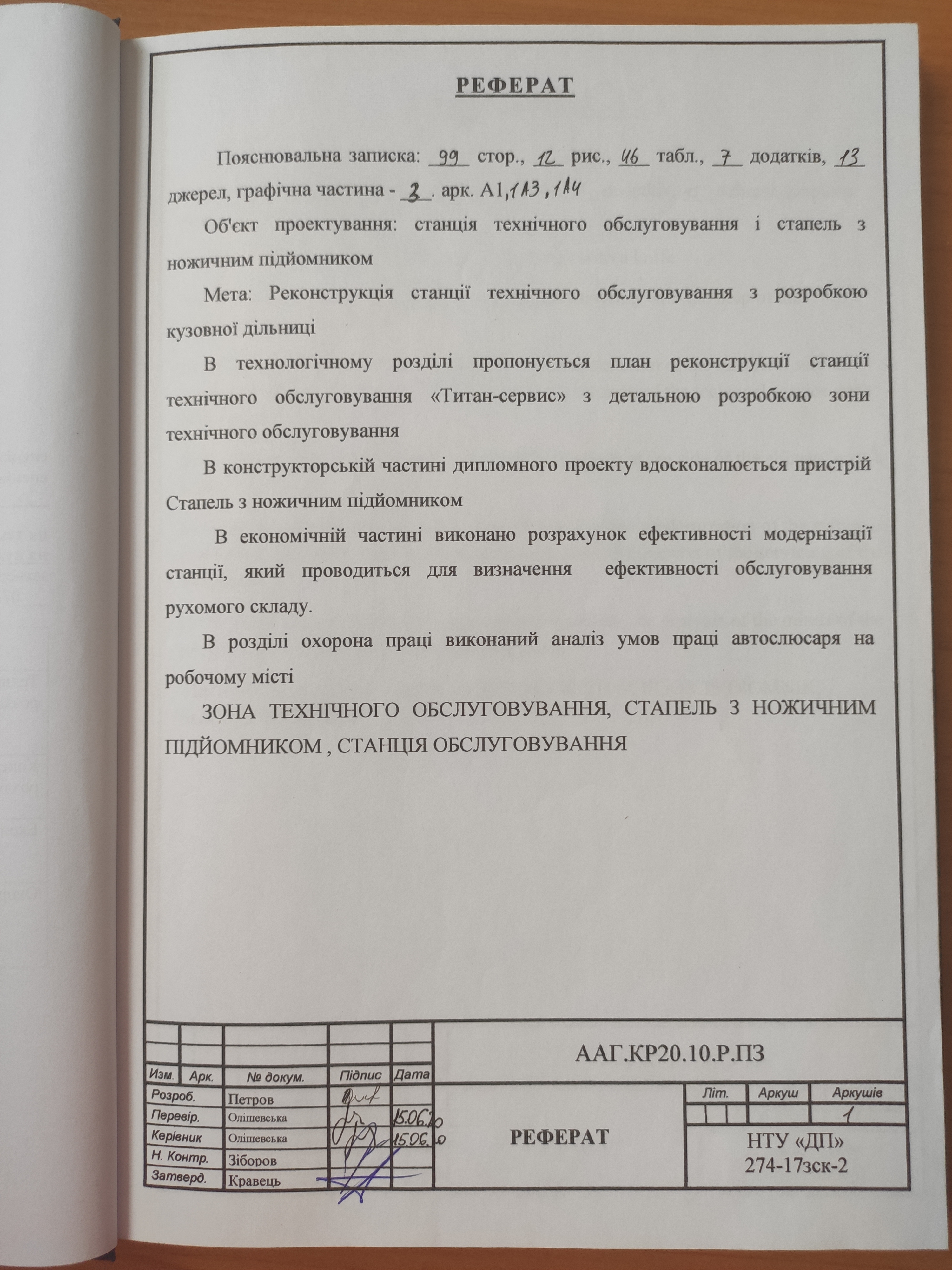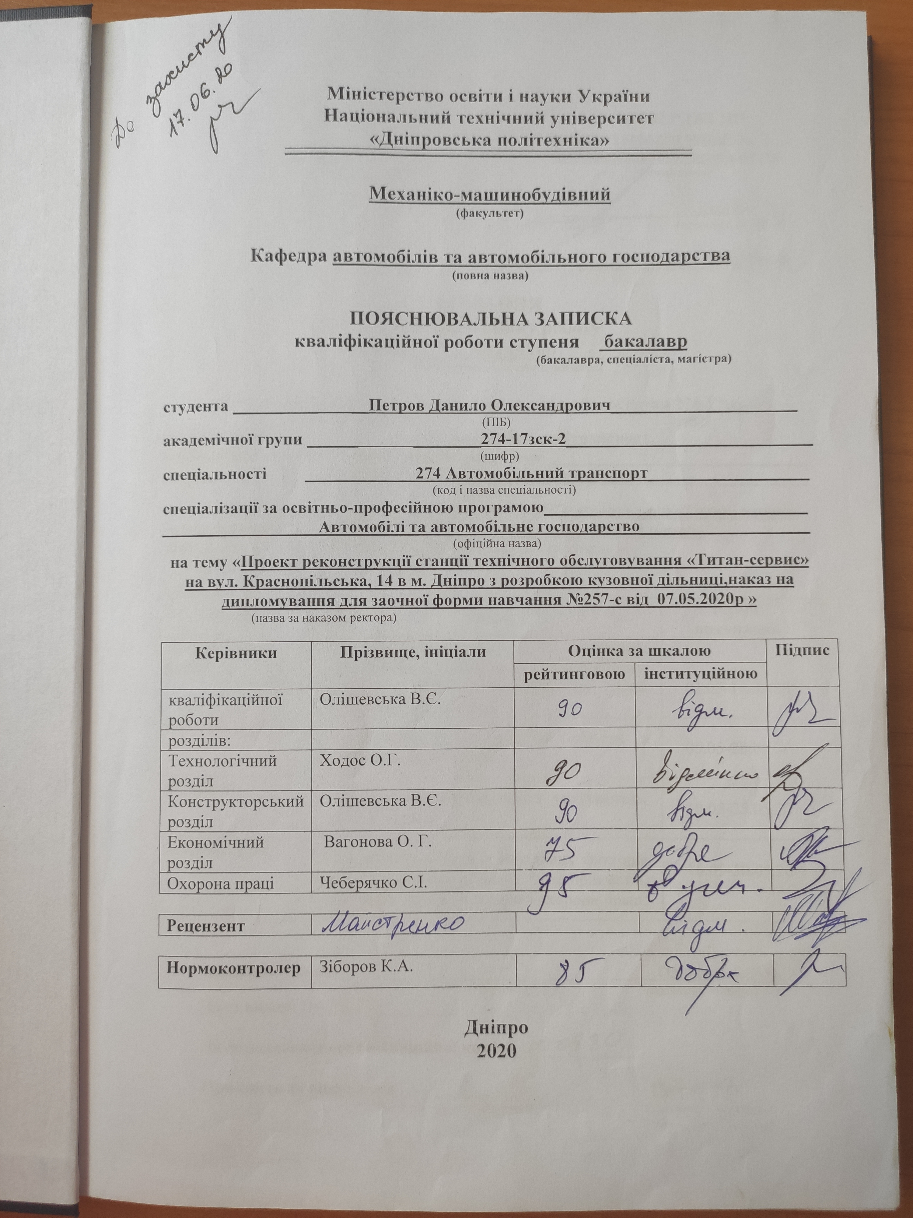 Проект реконструкції станції технічного обслуговування «Титан-сервис» на вул. Краснопільська, 14 в м. Дніпро з розробкою кузовної дільниці