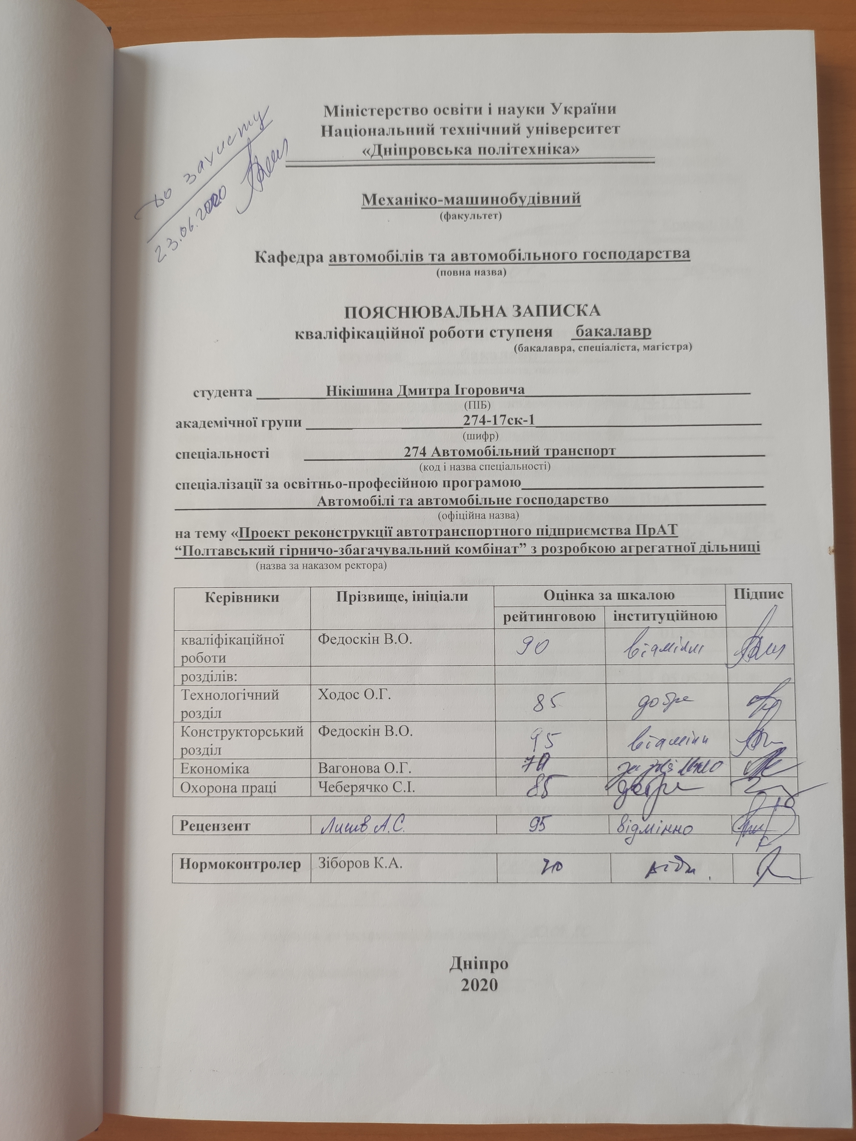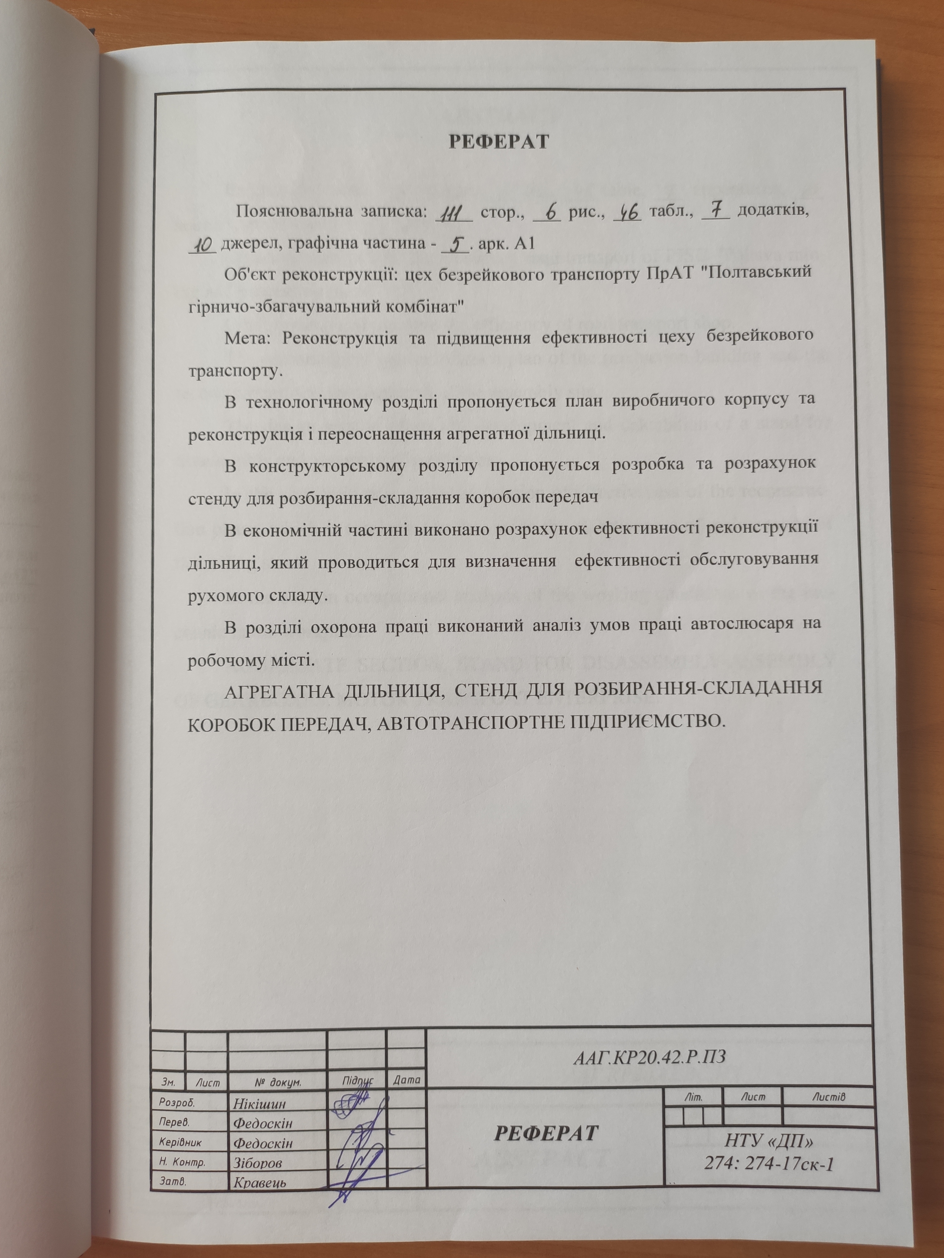 Проект реконструкції автотранспортного підприємства ПрАТ "Полтавський гірничо-збагачувальний комбінат" з розробкою агрегатної дільниці