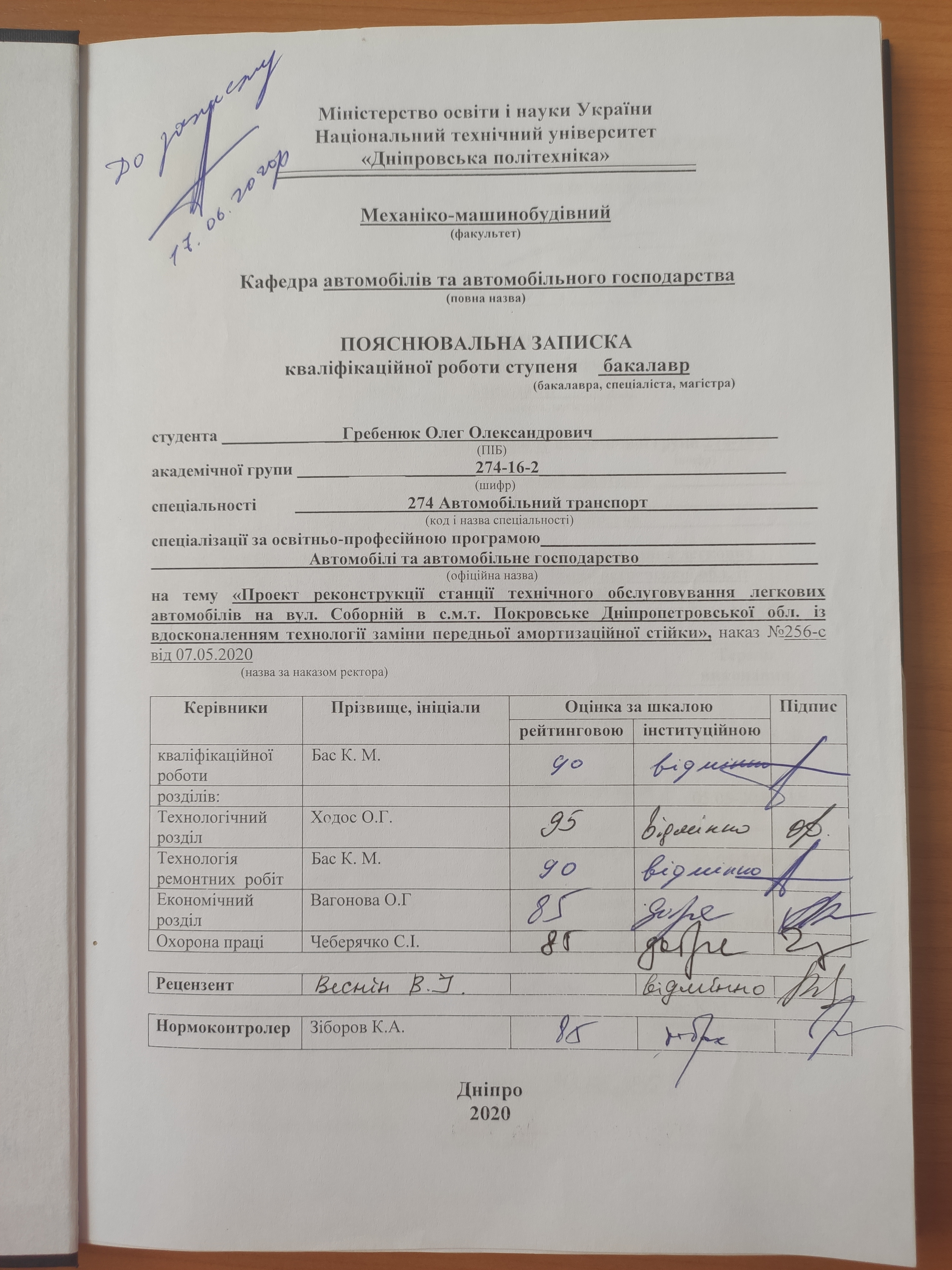 Проект реконструкції станції технічного обслуговування легкових автомобілів на вул. Соборній в с.м.т. Покровське Дніпропетровської обл. із вдосконаленням технології заміни передньої амортизаційної стійки