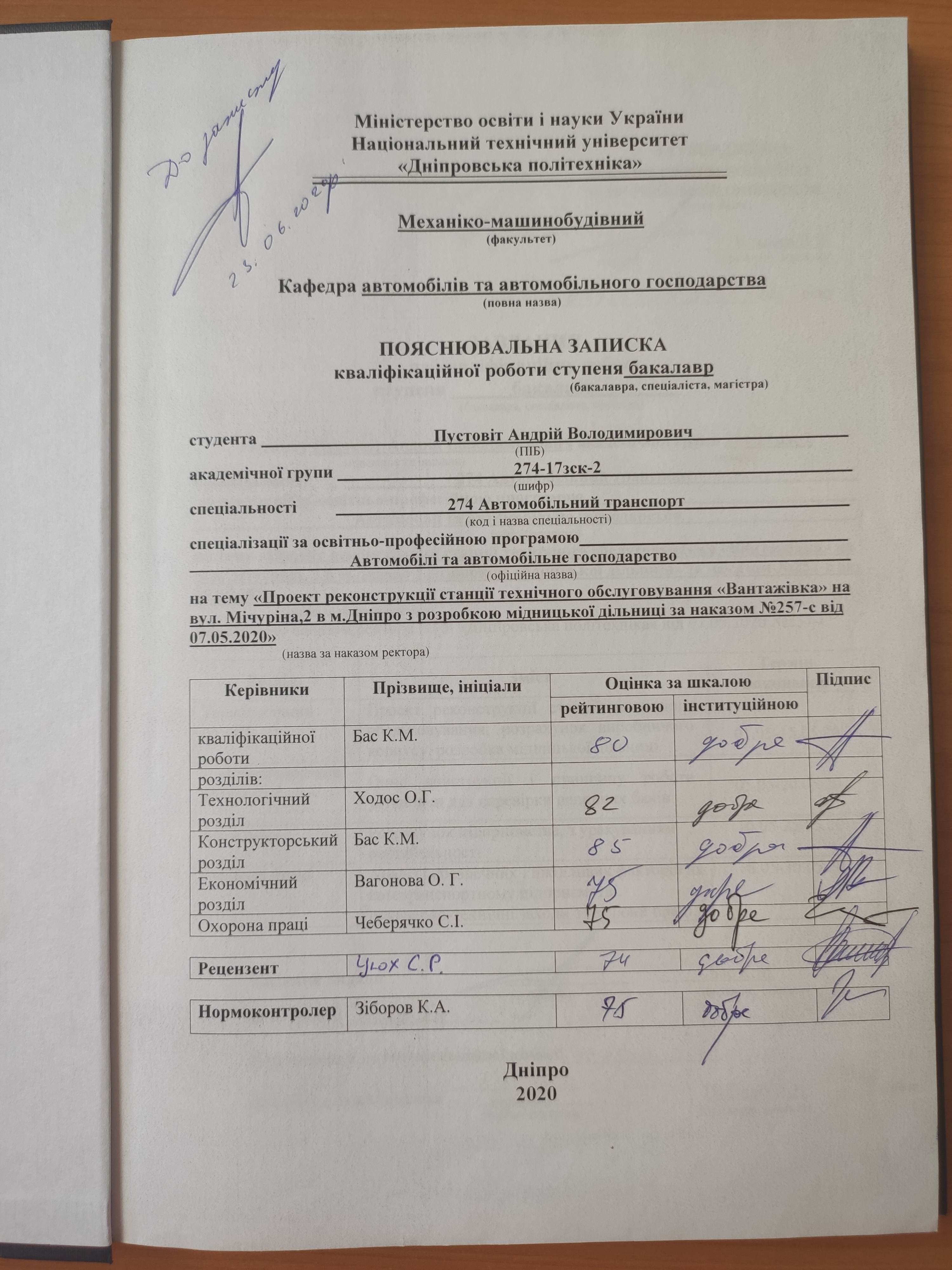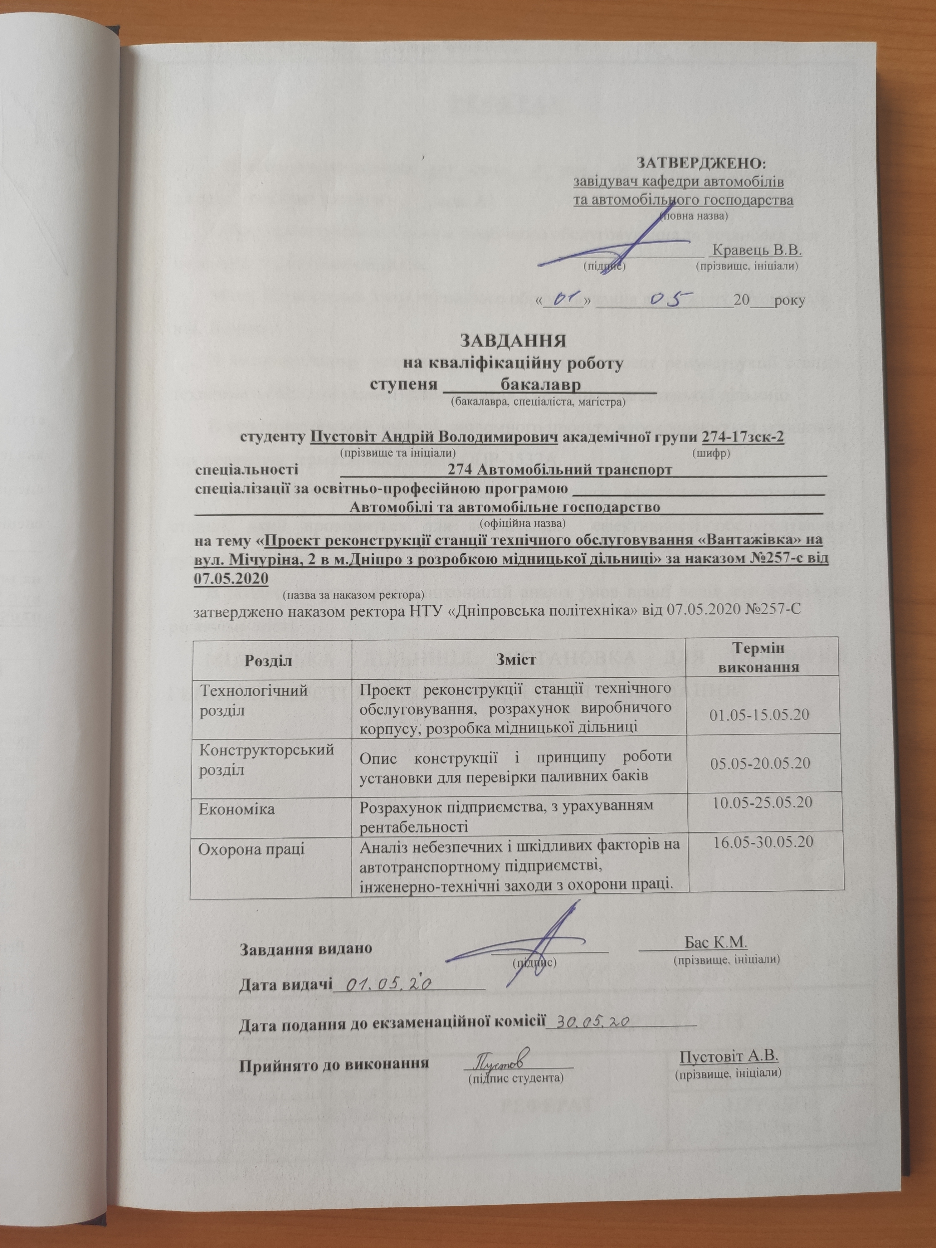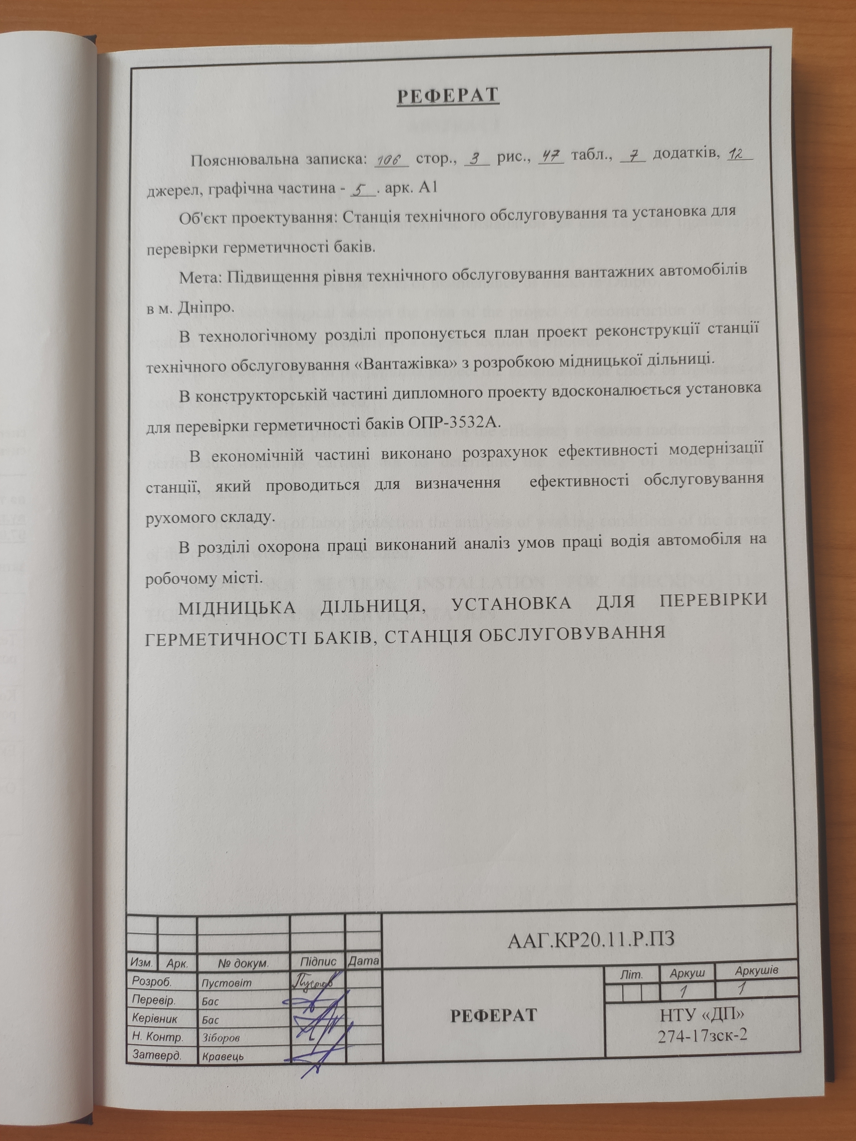 5. Проект реконструкції станції технічного обслуговування «Вантажівка» на вул. Мічуріна, 2 в м. Дніпро з розробкою мідницької дільниці