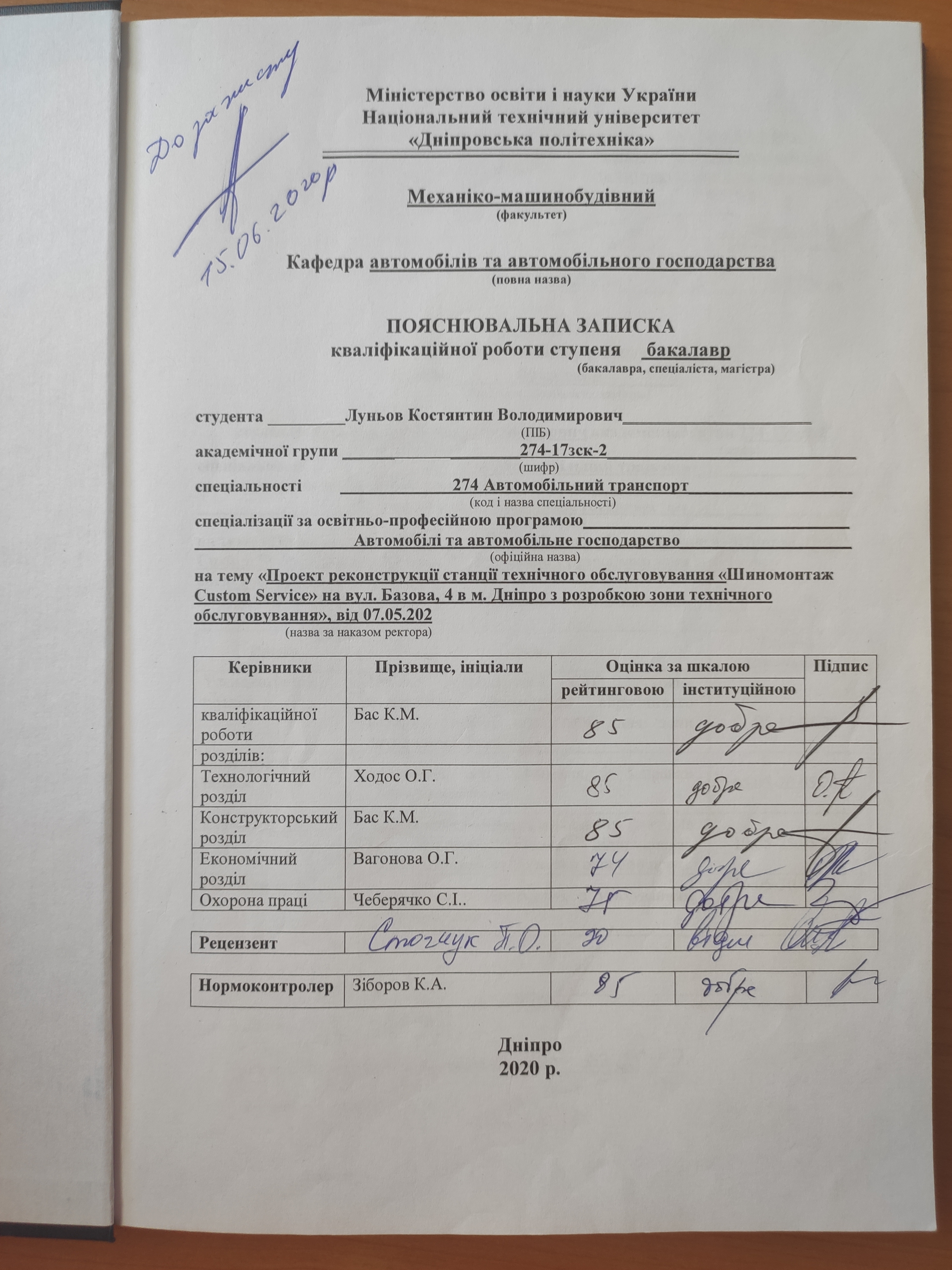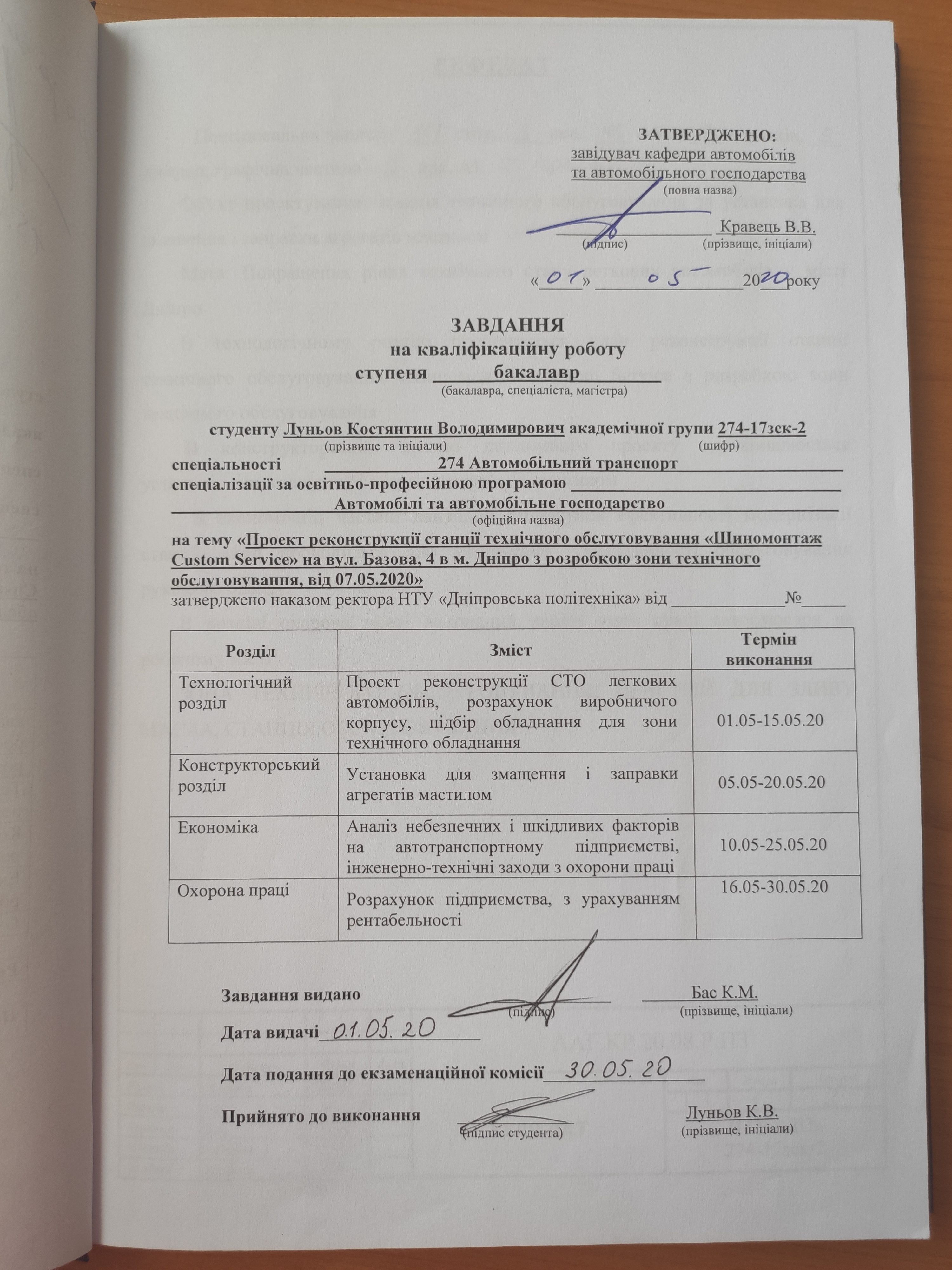 5. Проект реконструкції станції технічного обслуговування «Шиномонтаж Custom Service» на вул. Базова, 4 в м. Дніпро з розробкою зони технічного обслуговування