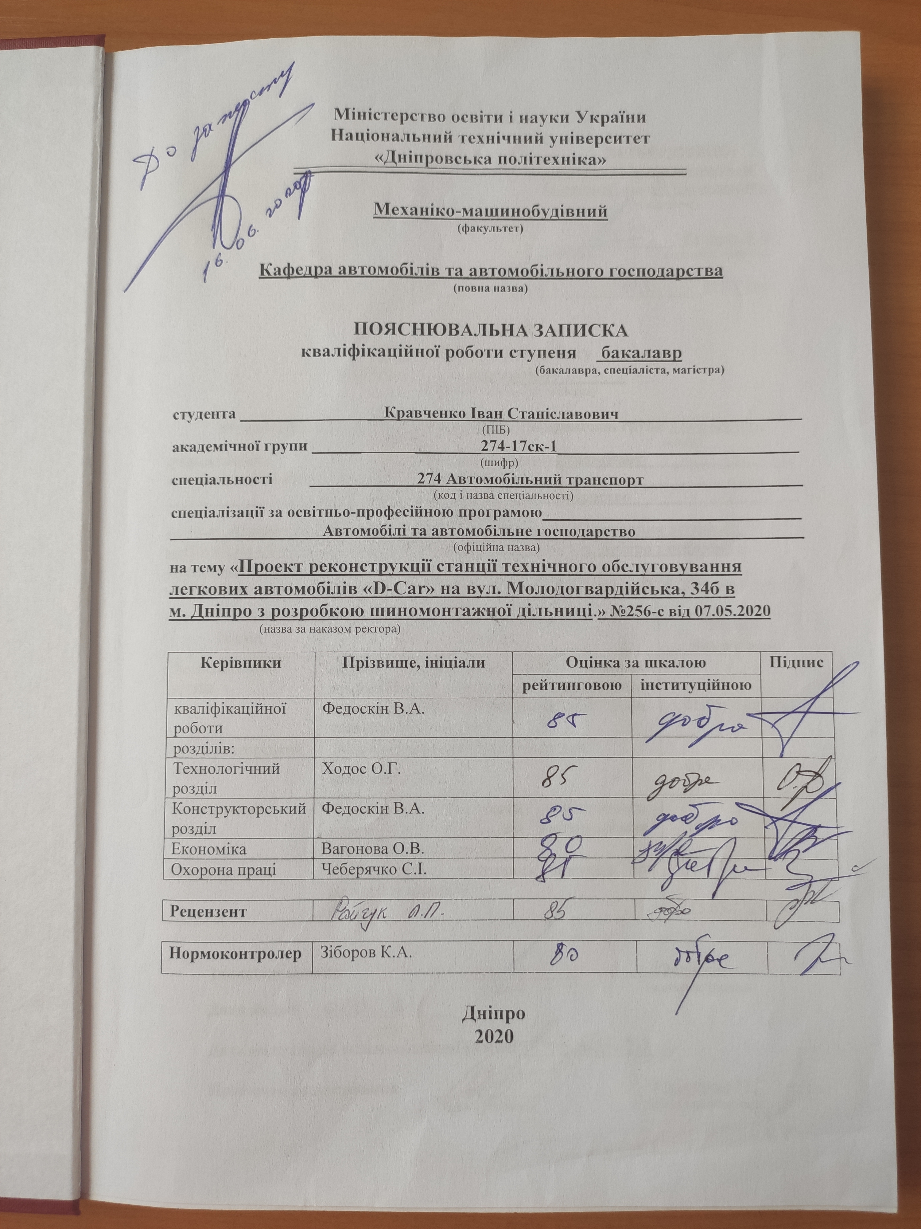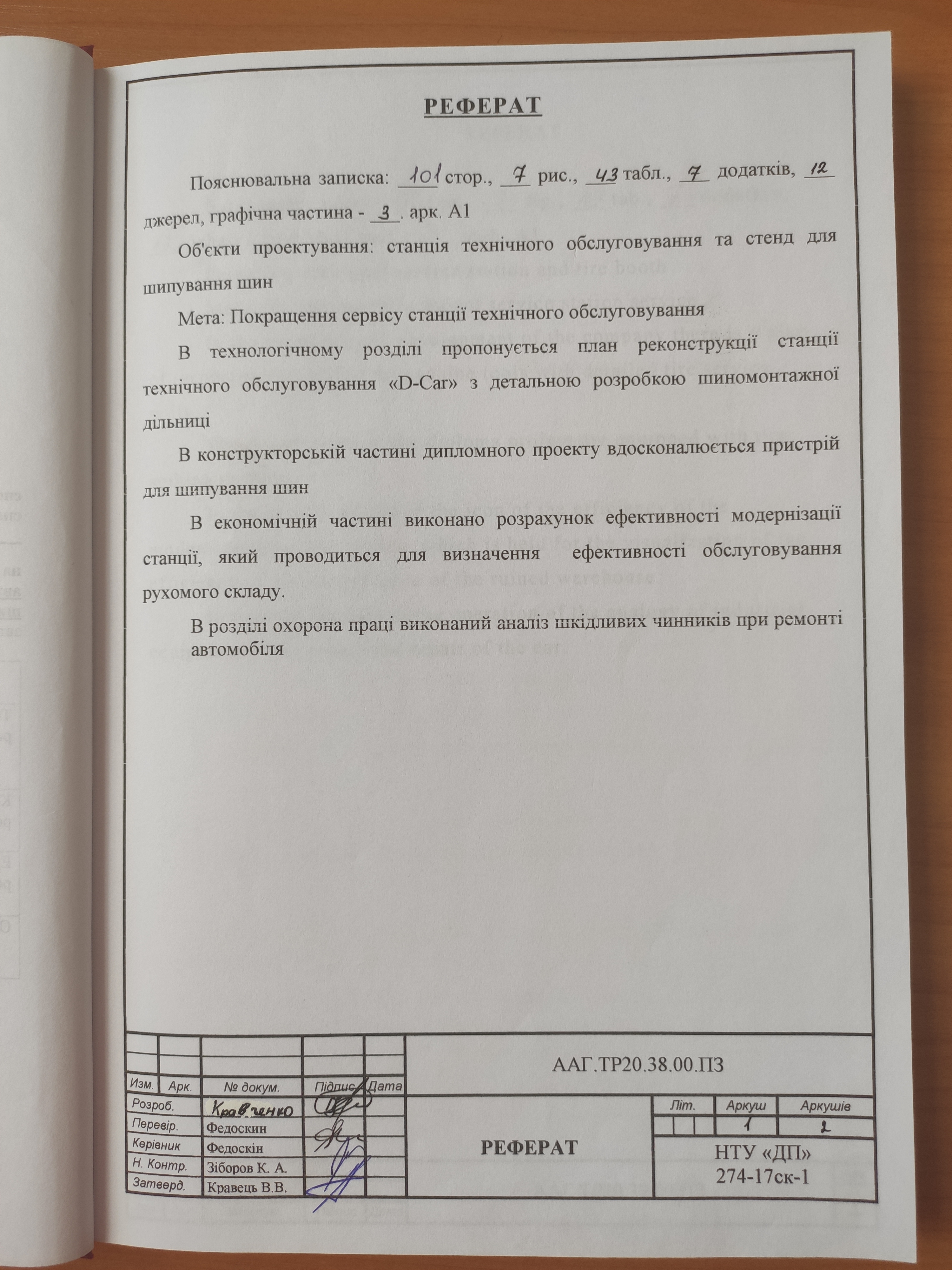 Проект реконструкції станції технічного обслуговування легкових автомобілів «D-Car» на вул. Молодогвардійська, 34б в м. Дніпро з розробкою шиномантажної дільниці
